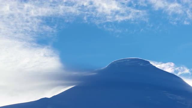 1077840 - clouds covering the snowy top of Osorno volcano on a cloudy day