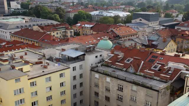 Cinemagraph - Back view of a woman looking at night Tel Aviv from rooftop. Wind waving her hair