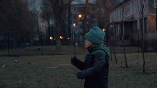 Children spending evening leisure outdoor. Two boys climbing stones in the house yard