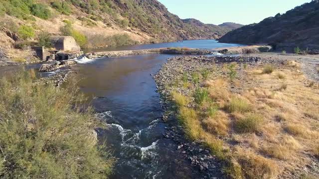 Aerial View of the Ruined Dam on River Guadiana, Portugal