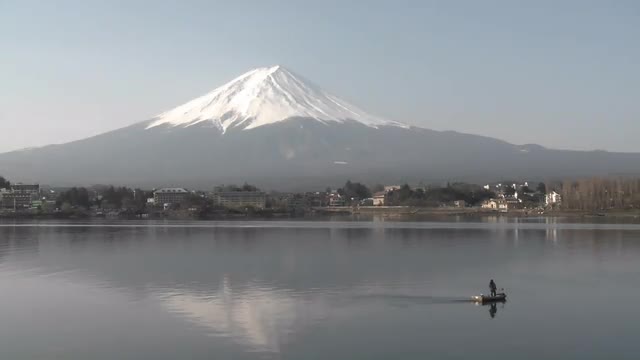 181588 - Mt. Fuji rises above a fisherman on Lake Kawaguchi, Japan.