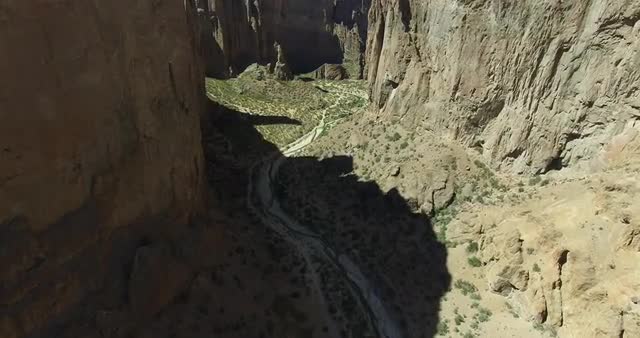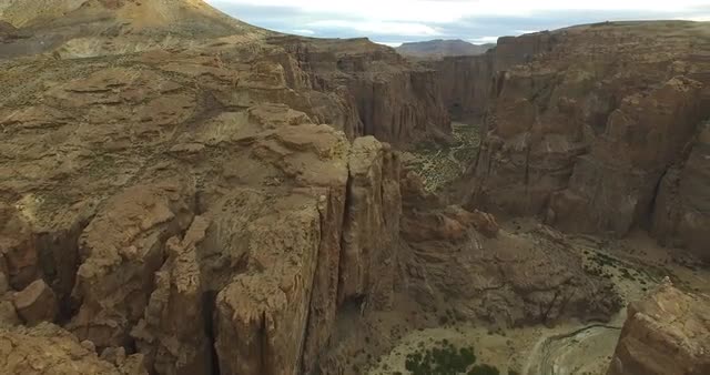 731465 - Aerial drone scene of big canyon in Patagonia, Argentina. Camera moves along the valley with high
