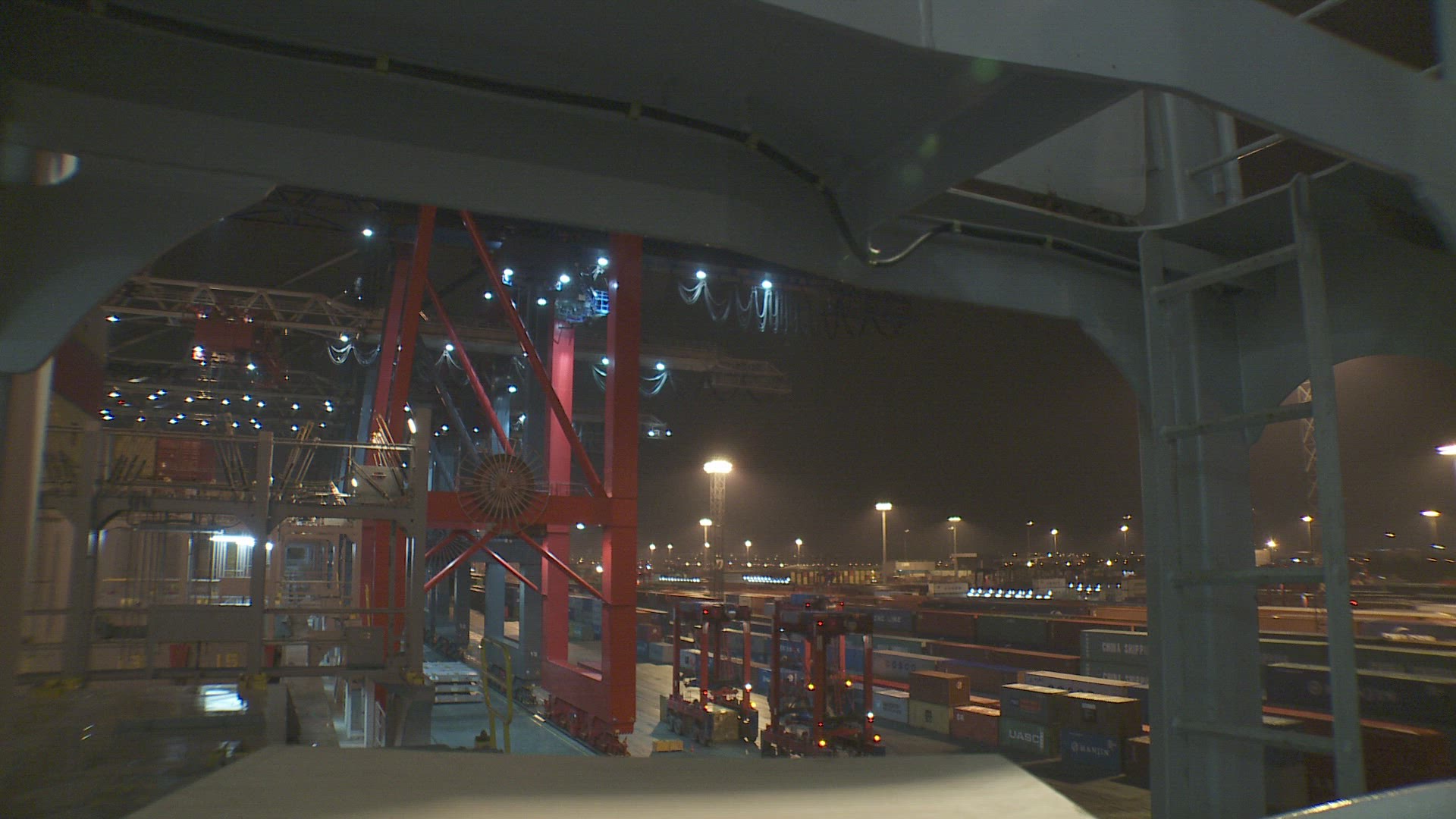 Cargo and passenger port with barges and cargo ships on tropical island. Aerial view:passenger ferry terminal Dapa city .Ferries for transport vehicles and passengers in the port. Philippines, Siargao. 4K video.Travel concept. Aerial footage.