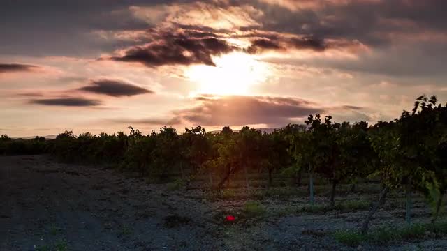 Vineyard plantation, clouds and mountains