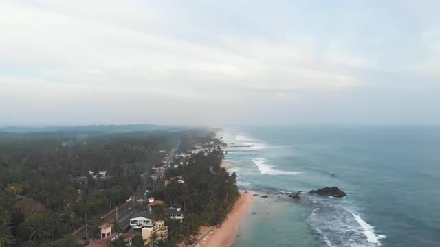 Aerial view: sea and the tropical island with rocks, beach and waves. Coastline of the tropical island Siargao with the mountains and the rainforest on a background of ocean, Bohol, Anda area. Seascape: ocean. Philippines. 4K video. Travel concept. Aerial footage.
