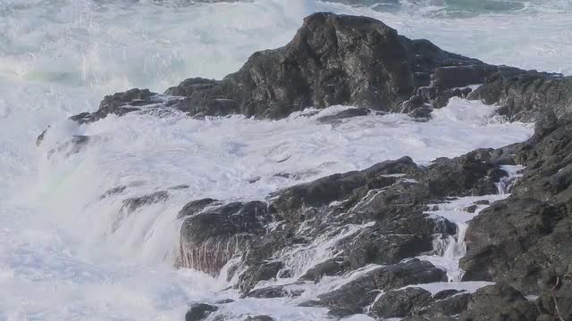 Seascape with tropical island, beach, rocks and waves. Bohol, Philippines.