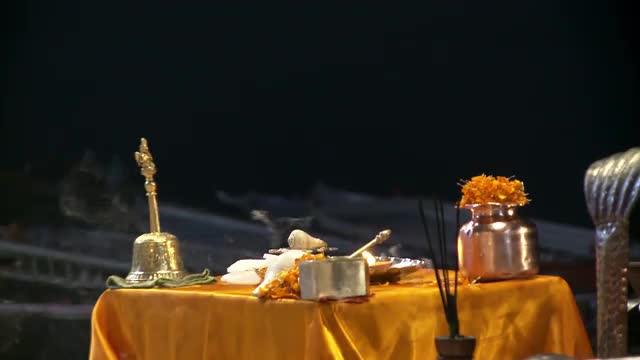 > Lighting Candle Offerings at the Ganga Aarti Ceremony