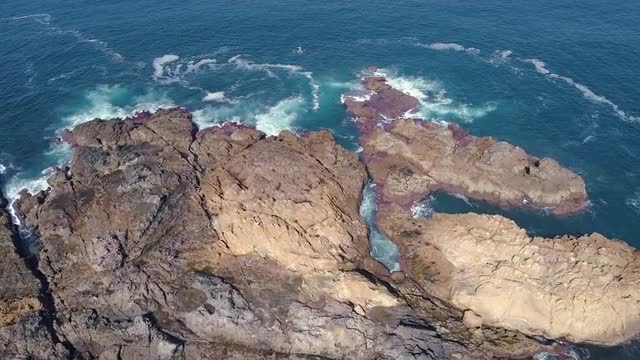 Aerial View Seascape with Waves on Rocky Coast, Portugal