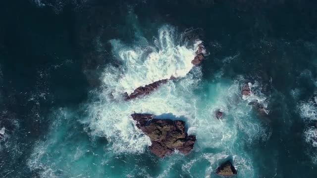 Aerial View Seascape with Waves on Rocky Coast, Portugal