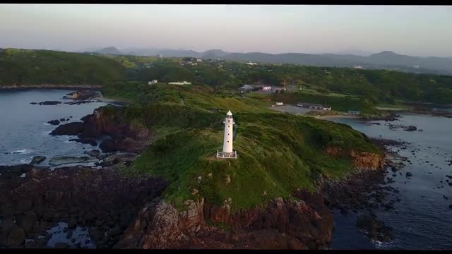 Aerial footage of lighthouse at sea, Shizuoka Prefecture, Japan