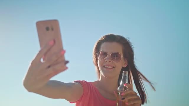Two Young Ladies Making a Selfie on the Beach