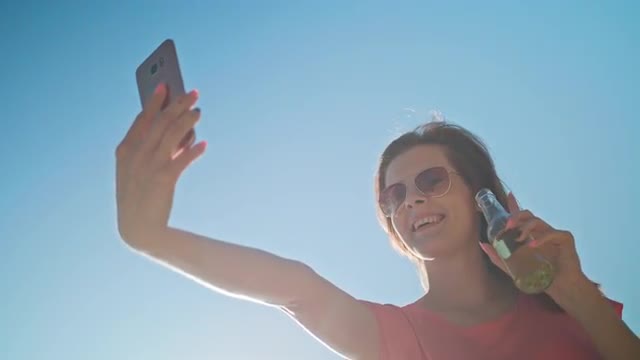 817144 - A Young Lady Making a Selfie on the Beach
