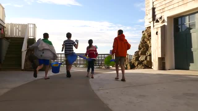 Young people having fun on the beach. Medium shot. Soft Focus.