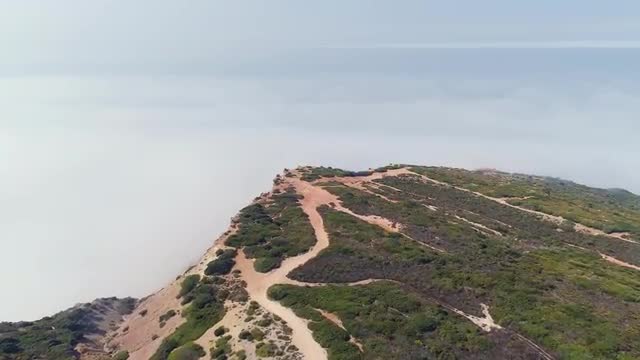 Aerial View Ocean Coastal Landscape wih Fog, Portugal