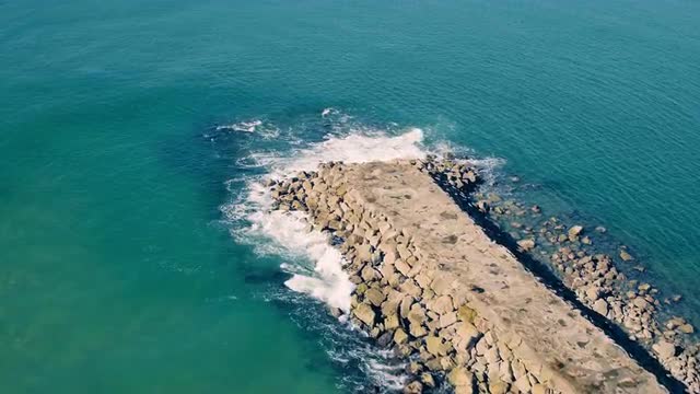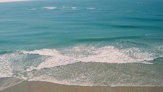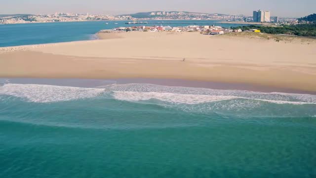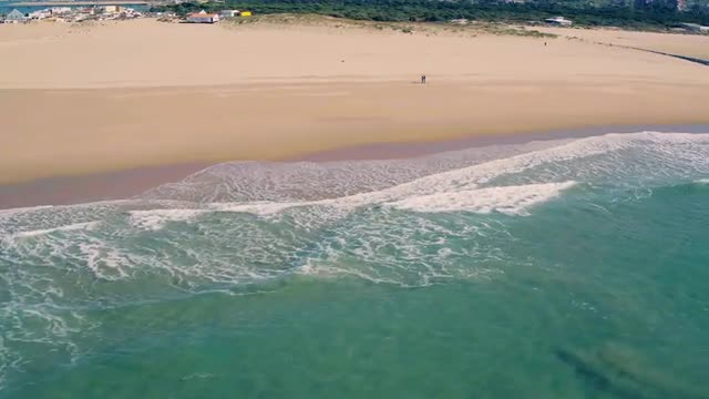 Aerial View Seascape with Waves on Sandy Beach, Portugal