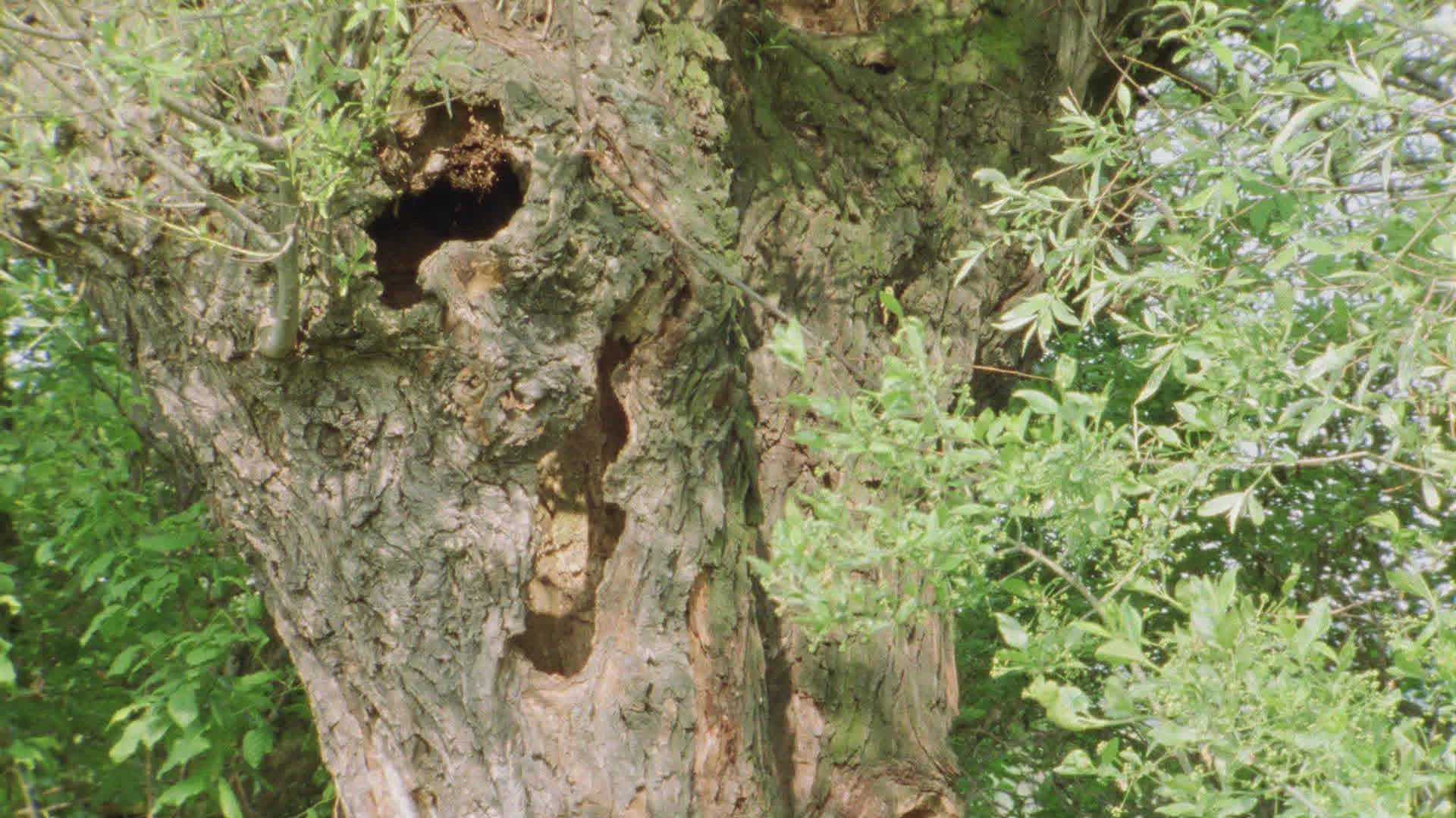 > Fallow deer (Dama dama) eating leaves from fallen tree