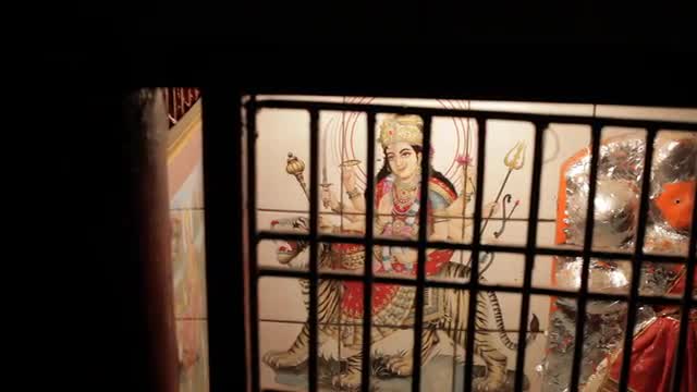 691988 - MS Painting of Hindu God behind window grill / India