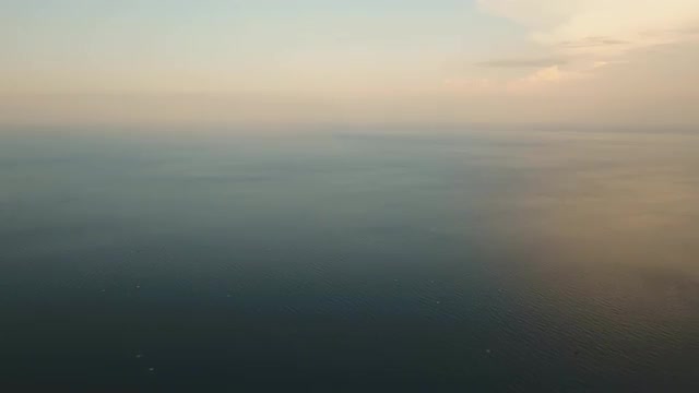Aerial view: Sea water surface at sunset. Flying over the blue ocean with blue water, sky. Bali,Indonesia.4K video. Travel concept. Aerial footage