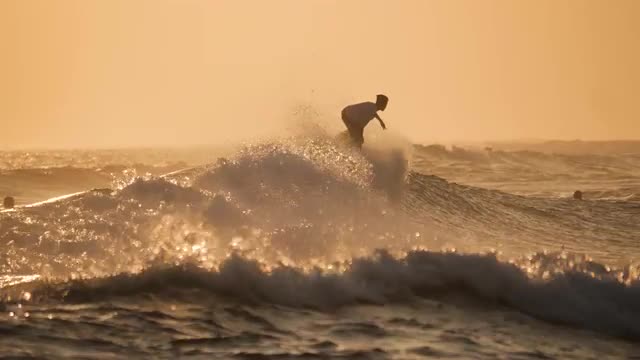 Aerial view of beautiful beach with surfers and tourists. Surfers enjoy the activity in Kuta beach in Bali, Indonesia. Beautiful view nice tropical beach from the air. 4K video, Travel concept, Aerial footage.