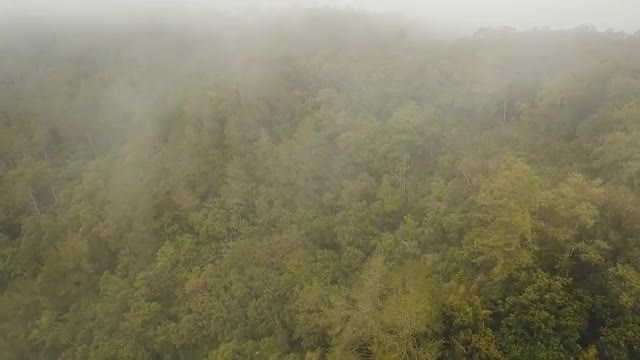 mountain forest in the clouds. Mystical forest in the fog. Aerial view of over tropical rainforest in mountains with white fog, clouds, Bali,Indonesia. Fog over the jungle. Aerial footage.