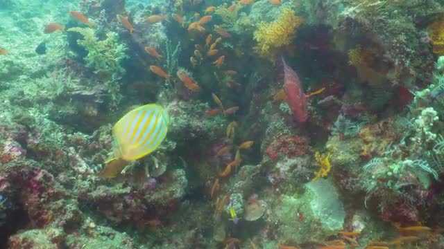 Fish and coral reef. Dive, underwater world, corals and tropical fish. Bali,Indonesia. Diving and snorkeling in the tropical sea. Travel concept. 4K video.
