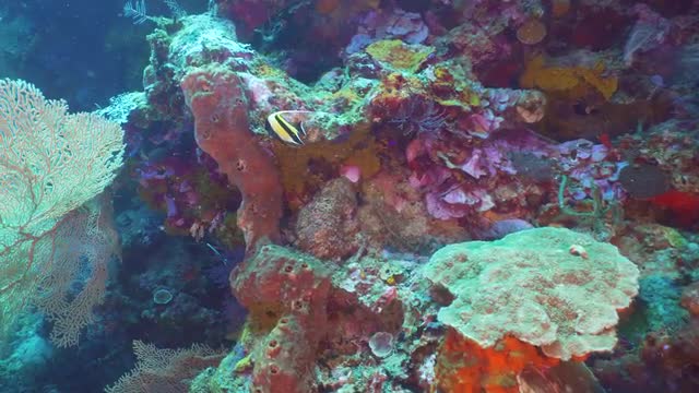 Fish and coral reef. Dive, underwater world, corals and tropical fish. Bali,Indonesia. Diving and snorkeling in the tropical sea. Wonderful and beautiful underwater world with corals and tropical fish.