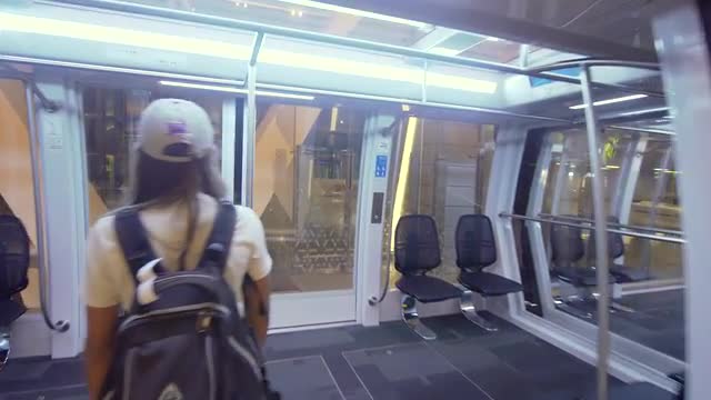 Monorail with train at Doha International Airport, Qatar. train on the monorail at the passenger airport carries passengers between terminals. Terminal at the Hamad International Airport Doha, QATAR.