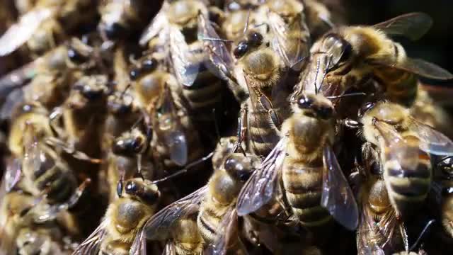 669324 - Orange wasp feeding on mint flower, bee & fly flyby