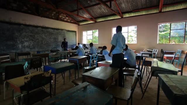 Students taking a test in class in a school in a village in Kenya two hours north of the African city Mombassa.