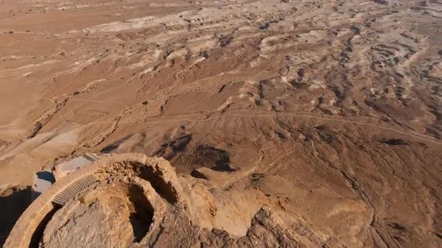 Time-lapse from the top of Masada overlooking the valley and the Dead Sea. Panning shot.