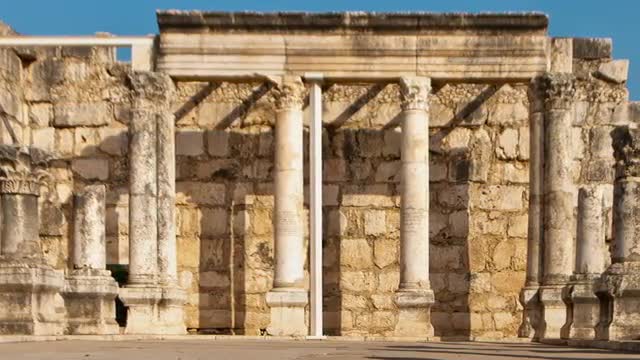 Dolly time-lapse of the old synagogue in Capernuam, Israel. Cropped.