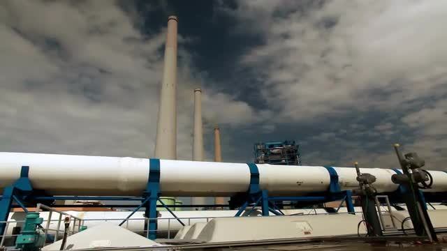 > Stock Video Footage of a white pipeline and smokestacks in Israel.