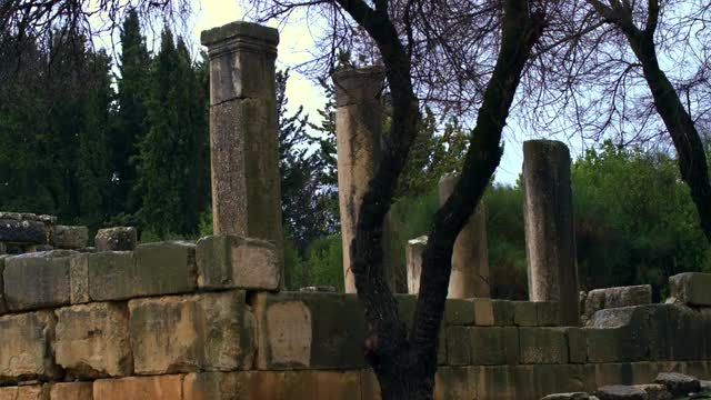 Static shot with the wind blowing through the trees at the Bar'am ancient synagogue in Israel. Shot with the Red One digital camera at 4k (4096 x 2304) resolution. 02/20/2011