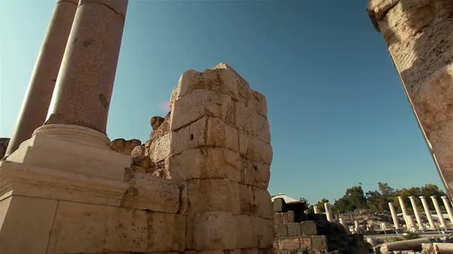 > Stock Video Footage of ruined Beit She'an buildings shot in Israel at 4k with Red.