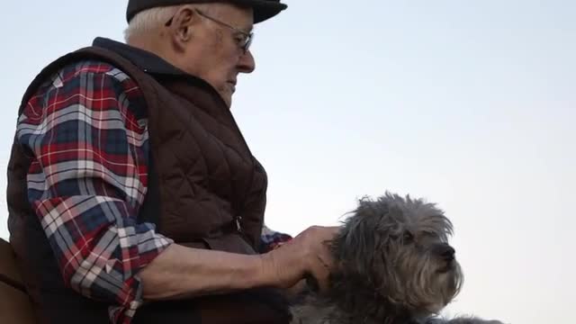 Happy elderly senior couple in 70s smiling and looking at camera in slow motion