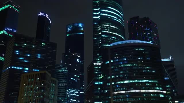 784654 - urban building lights background. clouds moving over city skyline at night sky