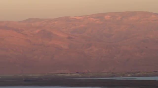 > Panning shot of Mountains and the Dead Sea at sunset shot in Israel.