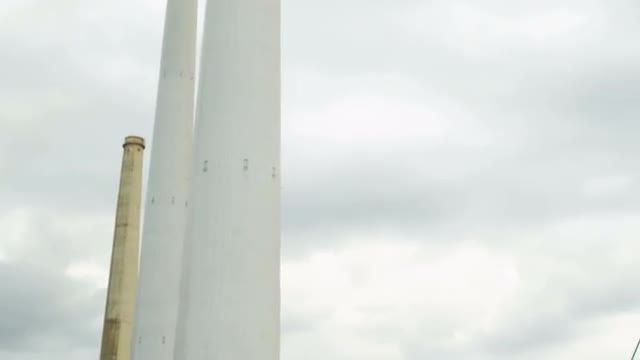Tilt down of three Smokestacks just north of the IDE Ashkelon Desalination Plant in Israel. Shot on 02/28/2011. Panning shot.