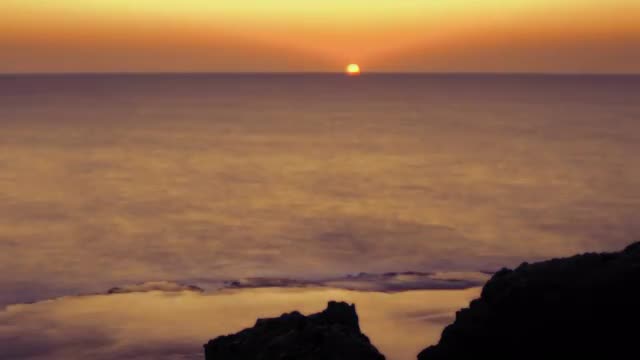 > Time lapse of rocky coast while sun sets. Cropped.