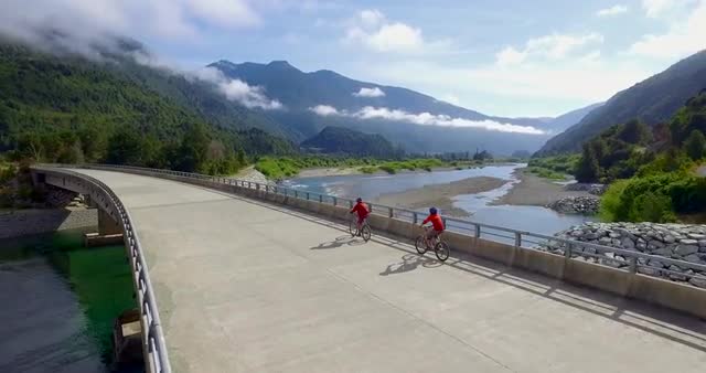 652690 - Two Motocross Riders Riding on the Off-Road Track. Drone Flies in Front of Them Carrying the Camera