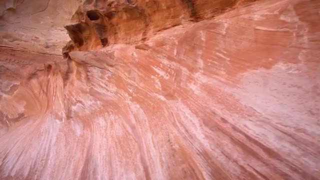 Following woman hiking through the colorful terrain in White Pocket walking over the swirling rocks.