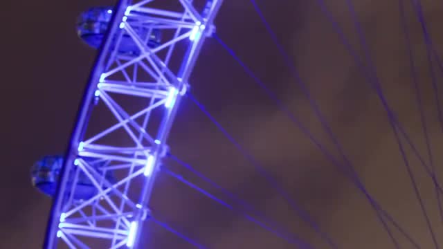 Time-lapse close up shot in the evening of the London Eye in London, England. Filmed in October 2011. Cropped.