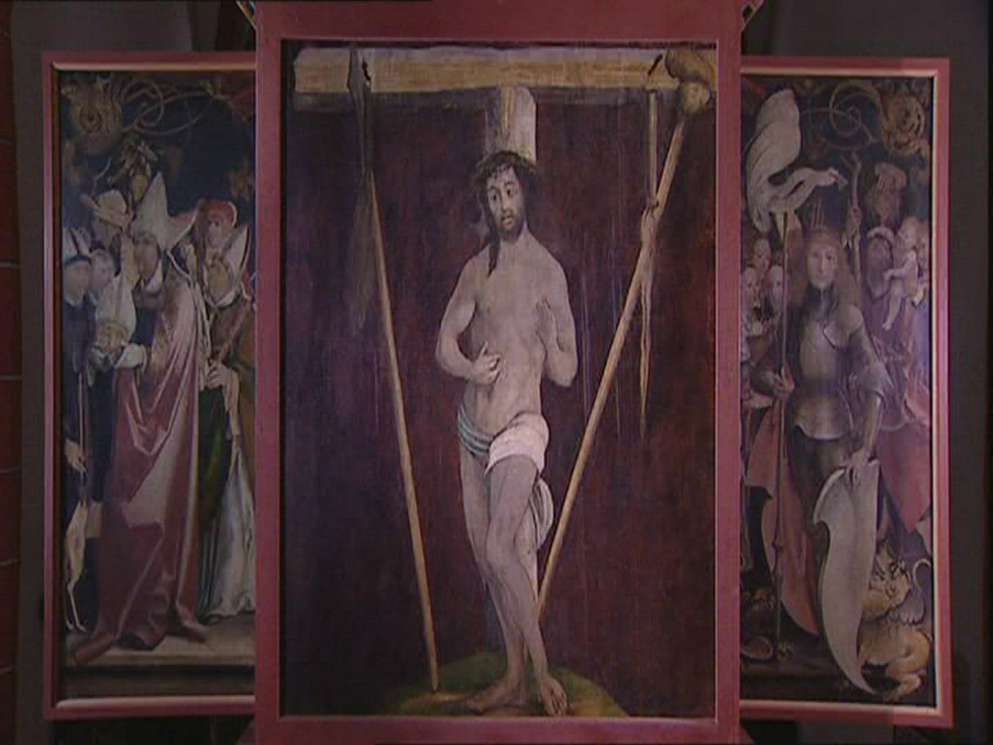 Stone crest above the Triclinium of Pope Leo III. Filmed in Rome, Italy.