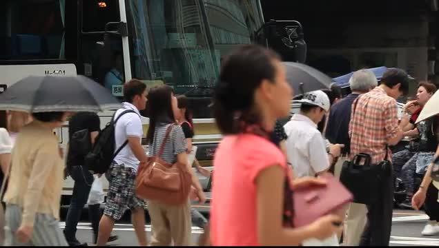 Tourists stand idly as they wait for transportation. Some are undercover from the rain while others wait in the street with umbrellas. Shot on May 8, 2012.