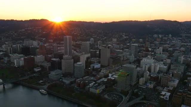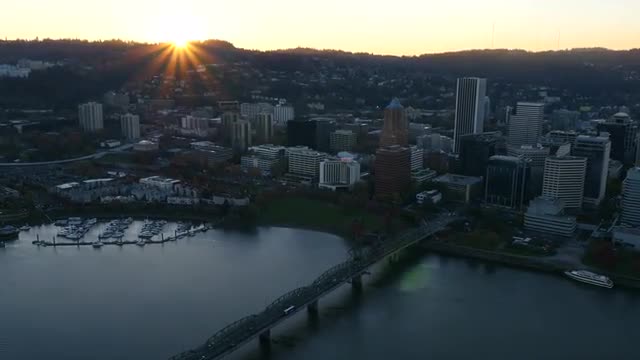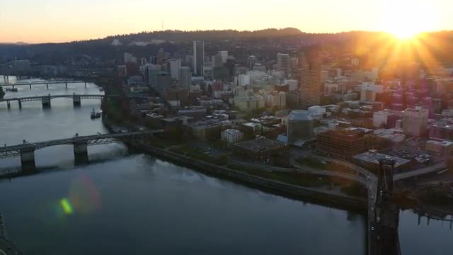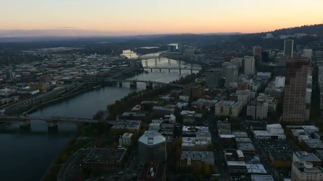 > Sunset blue hour pan Brooklyn and Manhattan Bridge Traffic