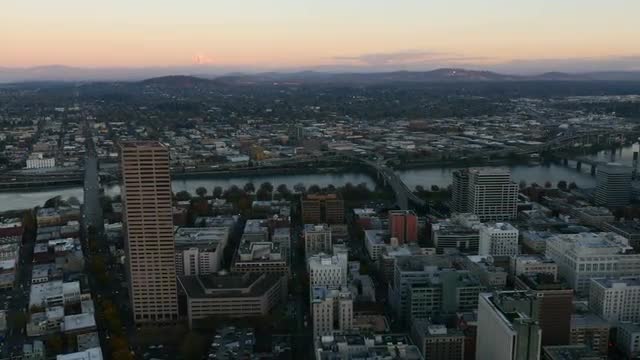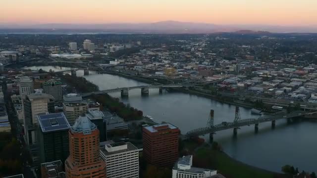 Sunset blue hour pan Brooklyn and Manhattan Bridge Traffic