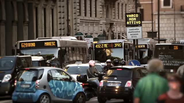 Footage of an intersection near Rome's Palace of Justice. Filmed in Rome, Italy, on May 5, 2012.
