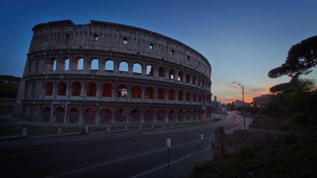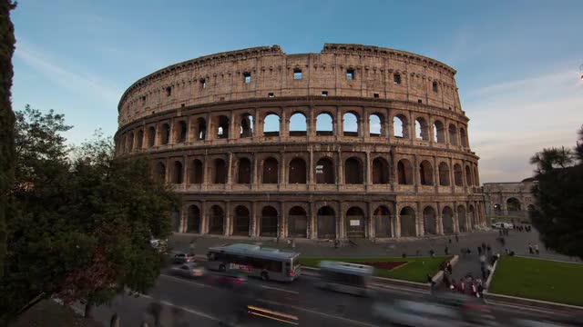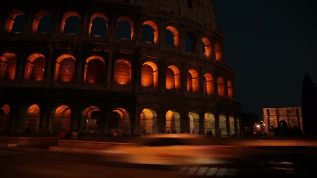 Camera looks up at an archway of the Colosseum that overlooks a Roman street. It tilts up to see the bars blocking the passageway. Filmed in Rome, Italy on May 6, 2012.