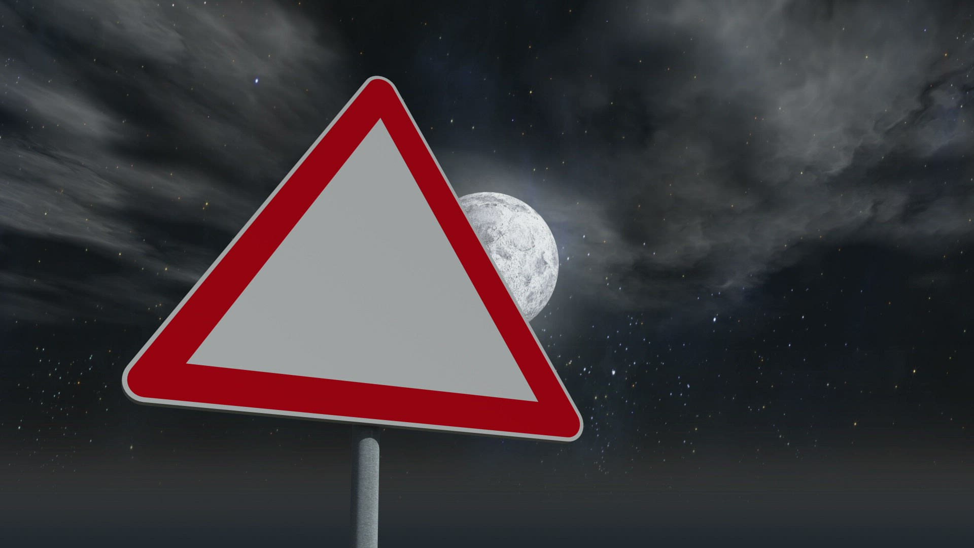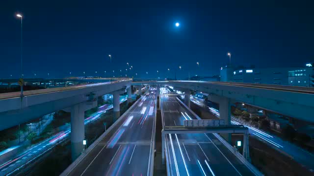 Footage of a busy intersection near the Colosseum. The Forum is illuminated for the night, and a full moon hangs in the dark sky. Filmed in Rome, Italy on May 6, 2012.