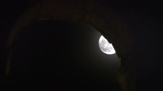 Time lapse of a full moon moving behind and arch high up a wall of the Colosseum. Filmed in Rome, Italy, on May 6, 2012.